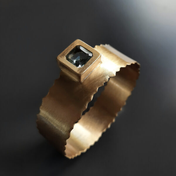 lubisz kamienie w prostej, geometrycznej oprawie w kolorze złota,