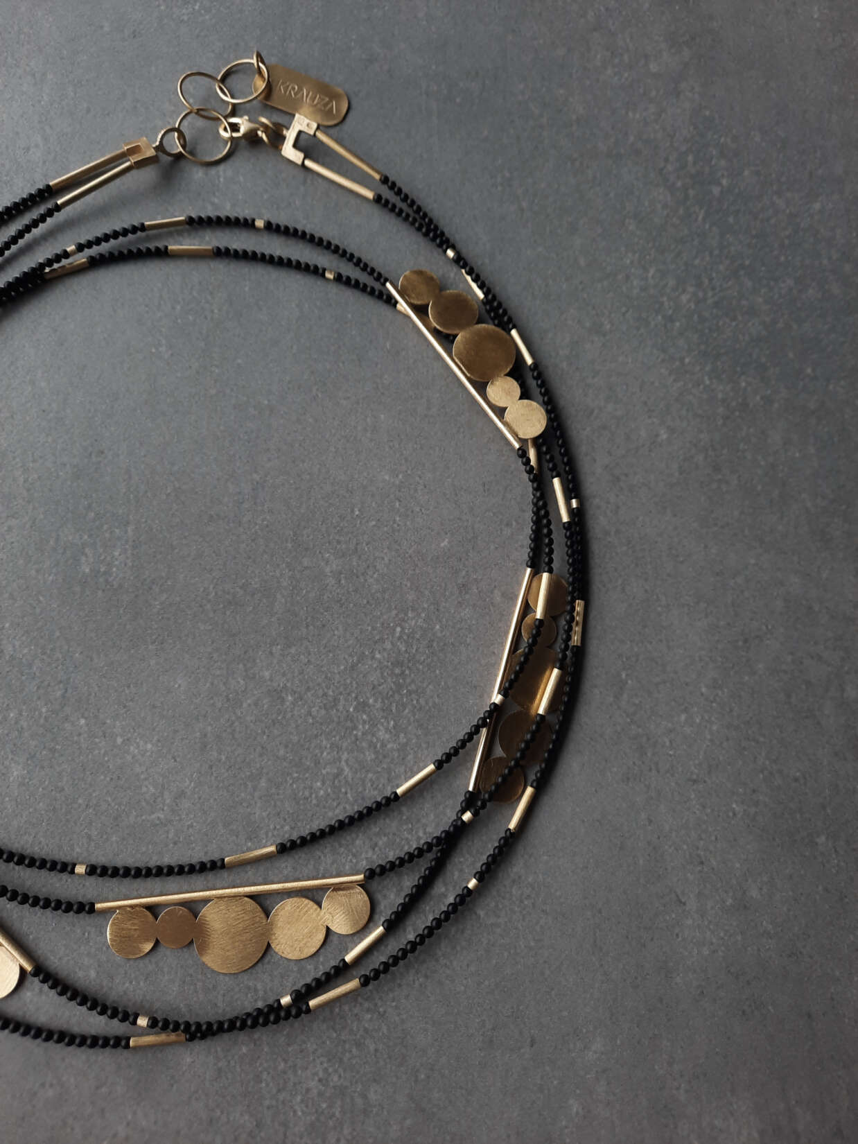 Długi naszyjnik BUBBLES z hematytami kupisz online na stronie www.krauzadesign.com oraz stacjonarnie w Galerii przy ul. Szpitalnej 4 w Warszawie.