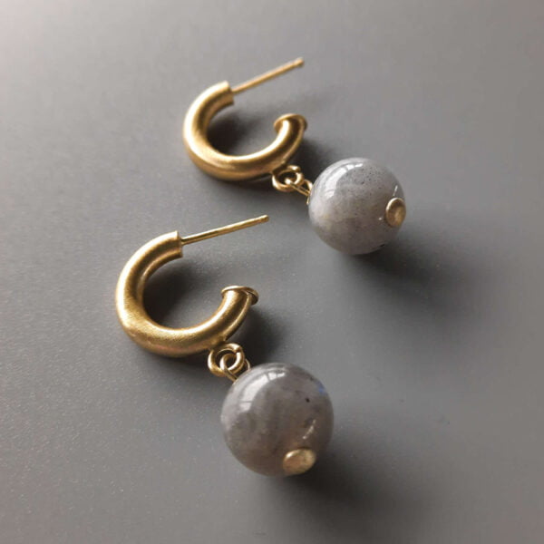 Kolczyki z labradorytem to połączenie fantazyjnych kół i pięknych kamieni.