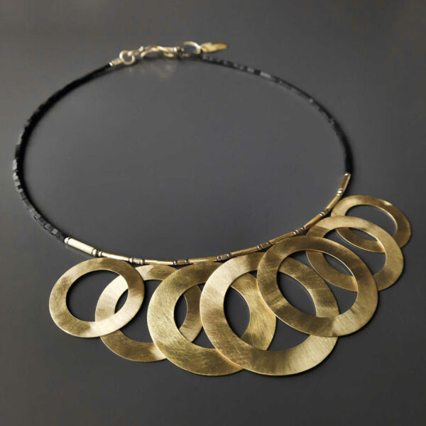Krótki naszyjnik koła z hematytami. To jeden z tych dodatków, które pokochasz. Jest lekki, wygodny a zarazem przyciąga uwagę.