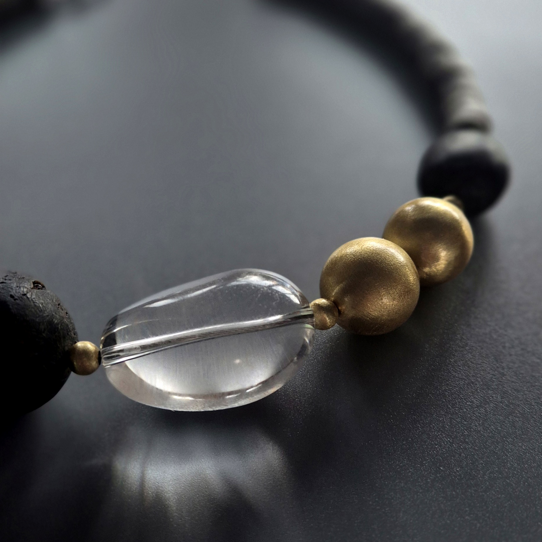 Kryształ górski bywa łączony z klarownością i porządkowaniem myśli. W biżuterii daje przede wszystkim efekt czystego światła: rozjaśnia kompozycję i równoważy cięższy ton bursztynu.