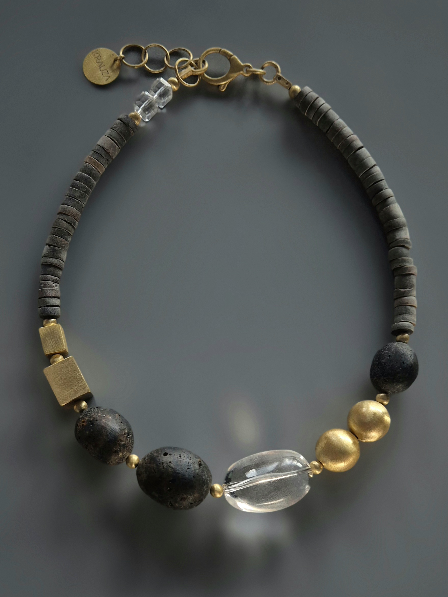 To autorski projekt Izy Krauzy i ręczna praca na materiałach, które nie udają perfekcji. Każdy element ma swoją fakturę i mikro-różnice, dzięki czemu naszyjnik wygląda naturalnie i „prawdziwie”, a nie jak masowy produkt. Srebro próby 925 daje trwałą bazę, a kompozycja surowych i gładkich powierzchni sprawia, że model pozostaje nowoczesny niezależnie od sezonu.