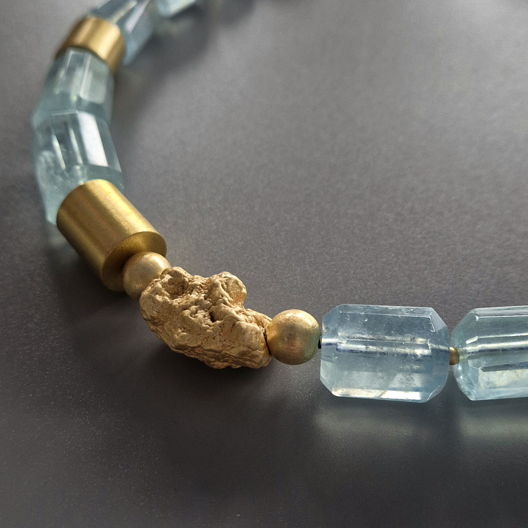 Naszyjnik z akwamarynem i złotymi elementami kupisz online na stronie www.krauzadesign.com oraz stacjonarnie w naszej galerii przy ul. Szpitalnej 4 w Warszawie. W butiku możesz na żywo zobaczyć odcień kamieni, sprawdzić proporcje naszyjnika i dobrać do niego kolczyki lub bransoletki z kolekcji.