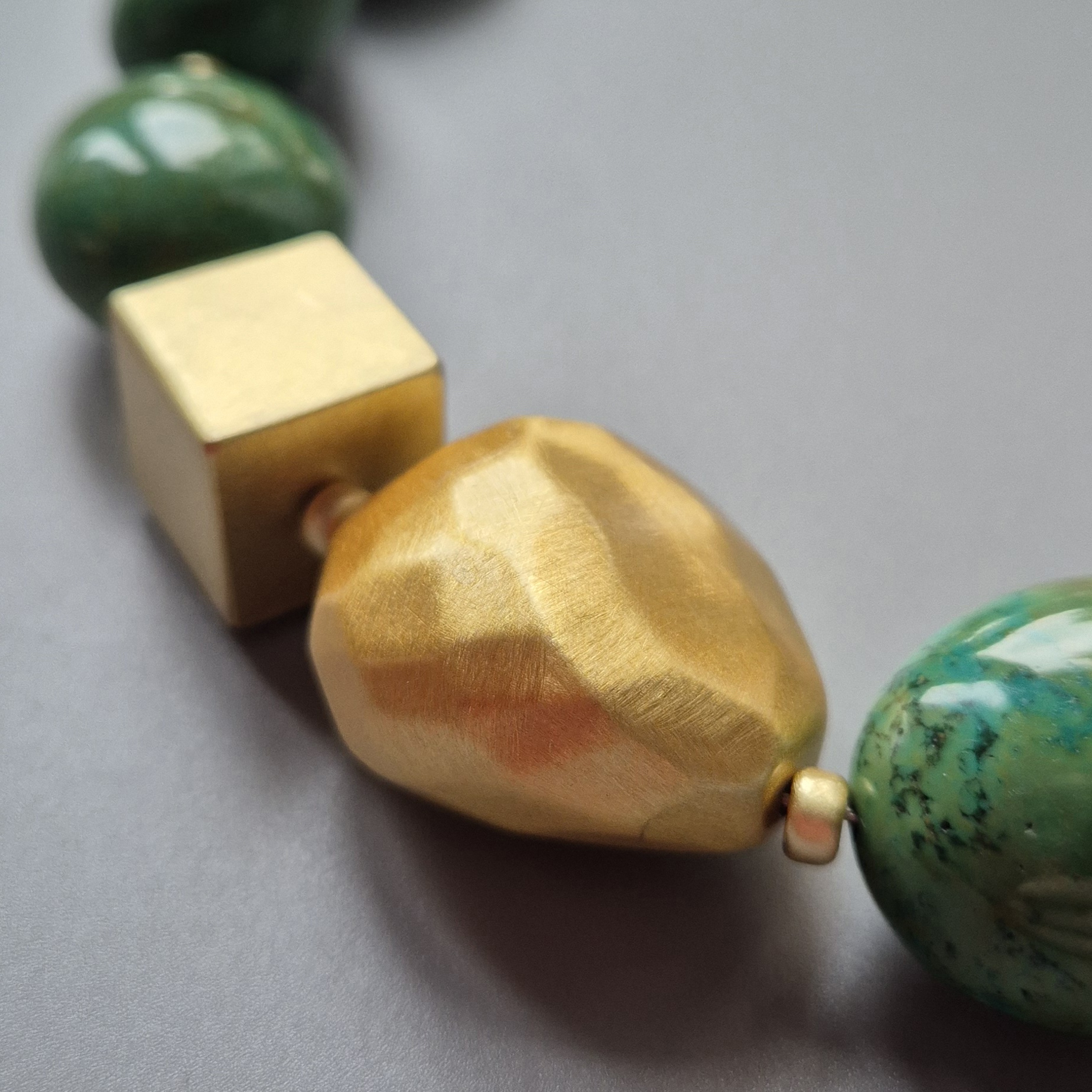 Naszyjnik z turkusu – głęboka zieleń i złote światło