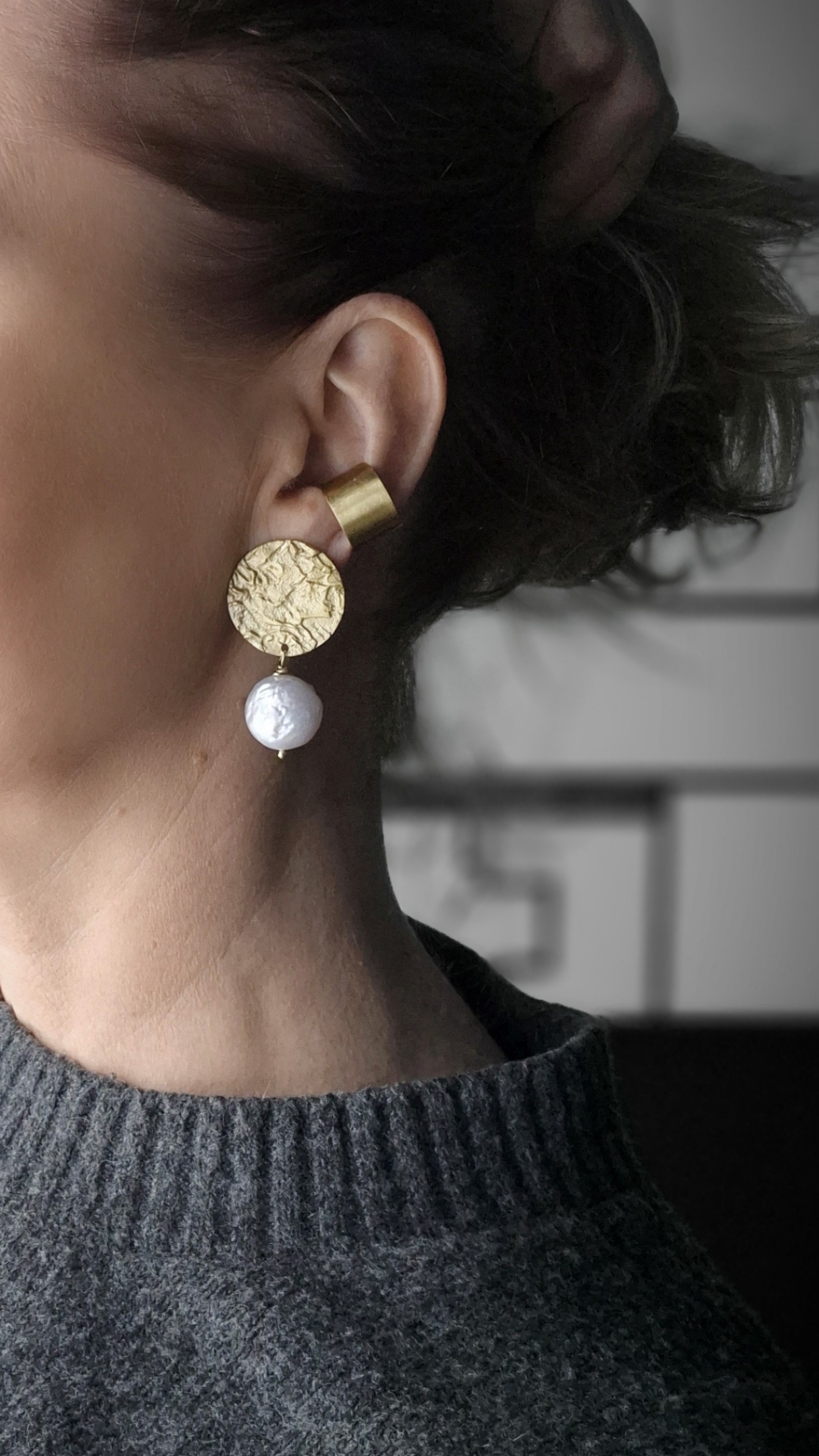 Średnia nausznica wykonana jest ręcznie ze srebra próby 925, pokrytego hipoalergiczną, złotą powłoką polimerową nakładaną metodą elektroforezy. Podczas codziennego noszenia jest naturalnie narażona na tarcie. Gdyby zaszła taka potrzeba, w KRAUZA design oferujemy możliwość odświeżenia powłoki, aby biżuteria odzyskała swój pierwotny blask. Szczegóły znajdziesz TUTAJ.