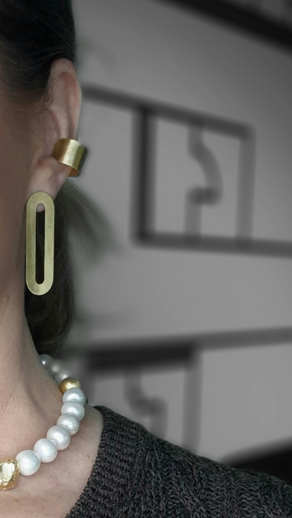 Biżuteria KRAUZA design to autorski projekt Izy Krauzy – ręczne wykonanie pozwala dopracować proporcje, krawędzie i komfort noszenia tak, aby forma była wyrazista, ale praktyczna. W tym modelu liczy się czysta linia i wykończenie: nausznica ma wyglądać nowocześnie, a jednocześnie pasować do garderoby, którą nosisz latami.